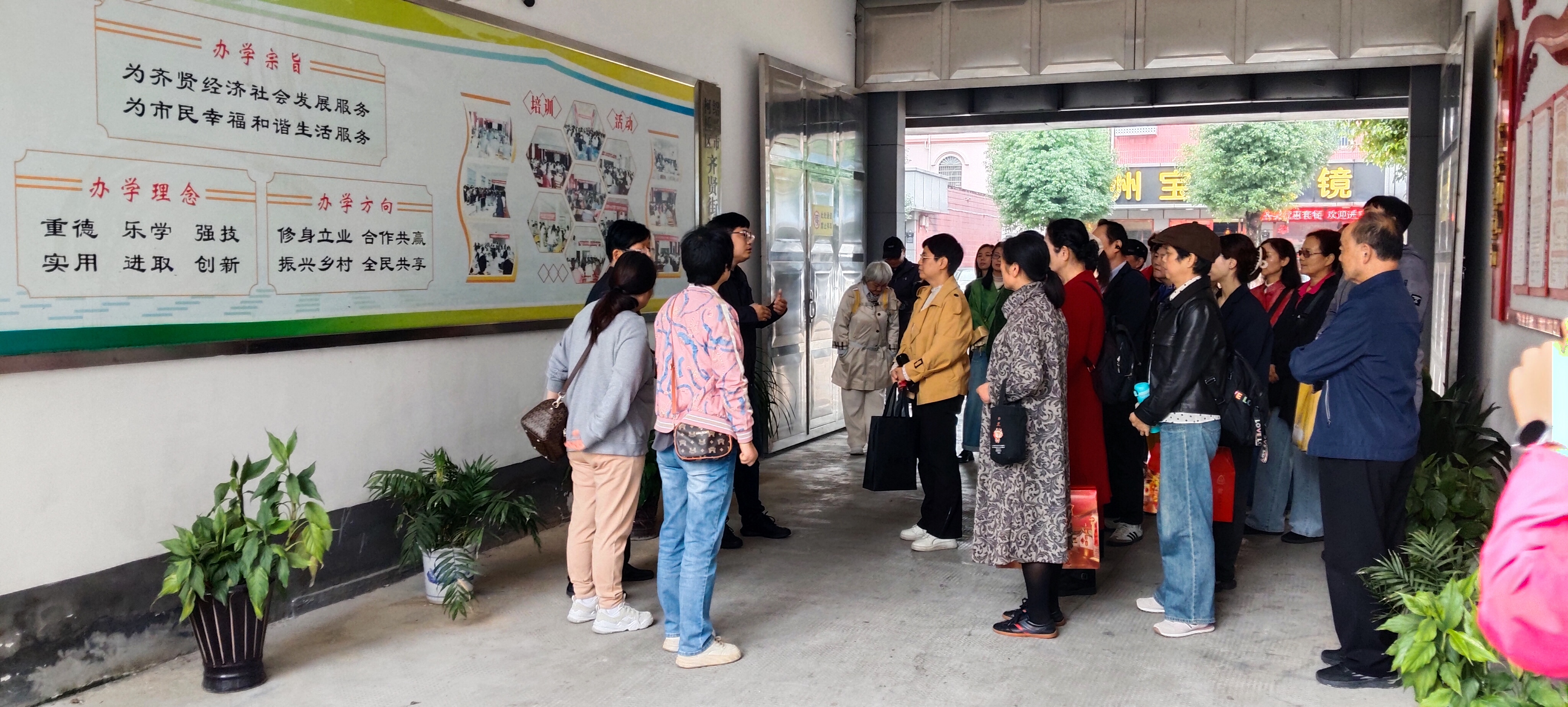 考察团一行在崇福镇成人文化技术学校校长陈黎、副校长吕伟带领下,率先听取该校张瑜锋校长工作经验介绍。随后,考察组一行参观该校办学环境和教学设施,并在张瑜锋校长解说下,先后走进齐贤的非遗课堂--“共富工坊·越艺纸扇”培训,绍兴十碗头的空中课堂--“绍兴菜·绍兴味”农家乐厨师培训,学历课堂--2024届成人高中双证制教学和富民课堂以及“共富工坊·直播带货”创业培训现场。